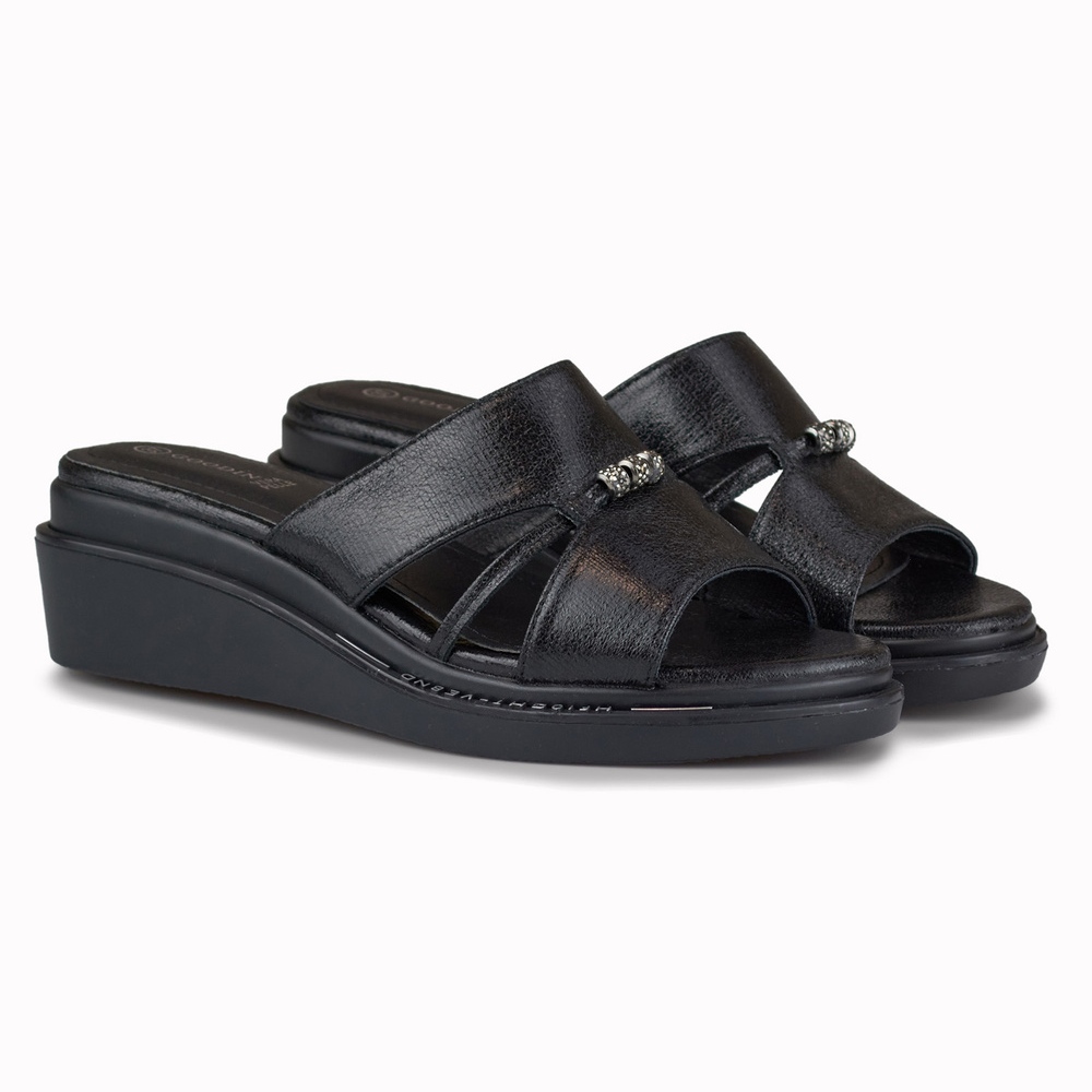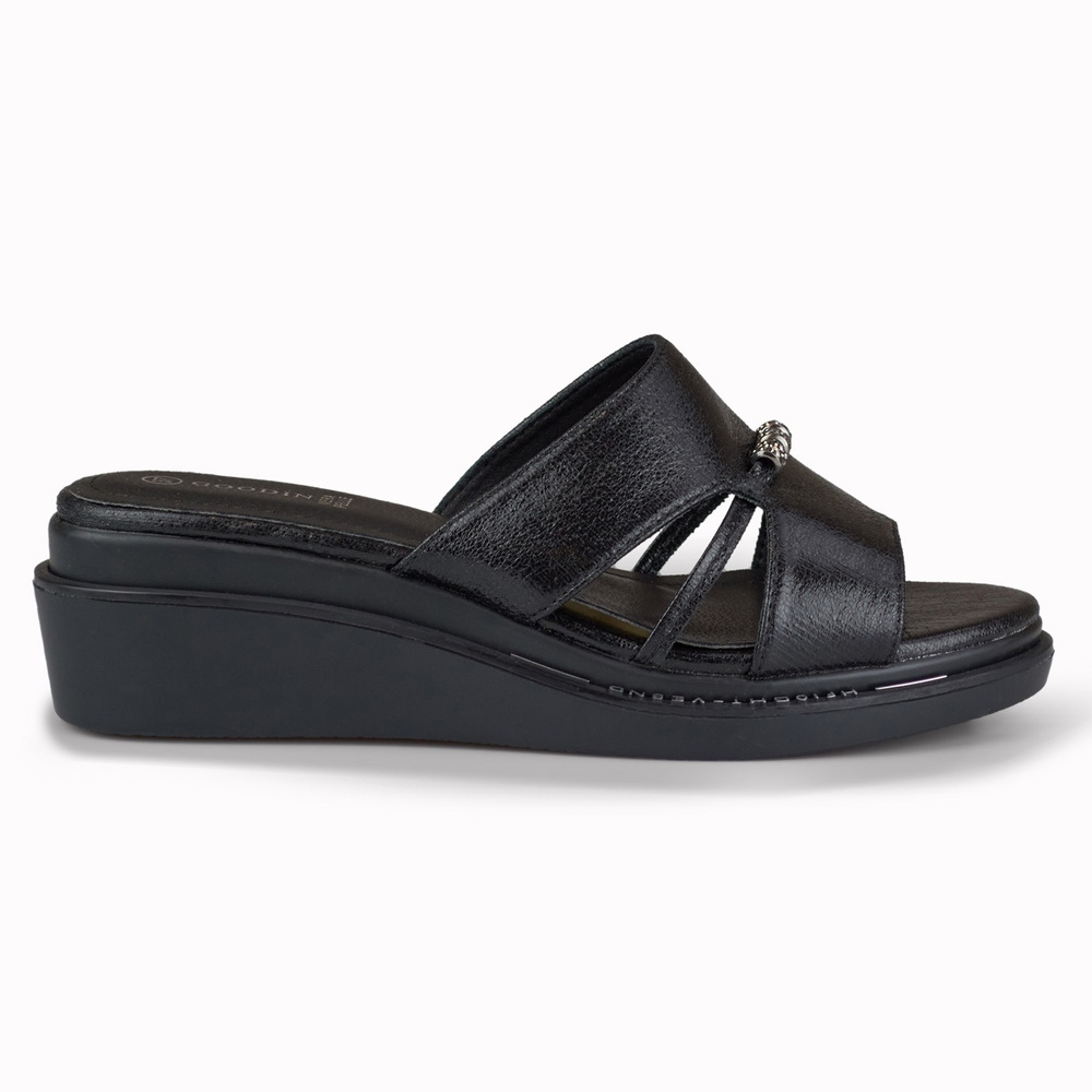 Pojedinosti: Udobne elegantne ženske papuče na wedge crna