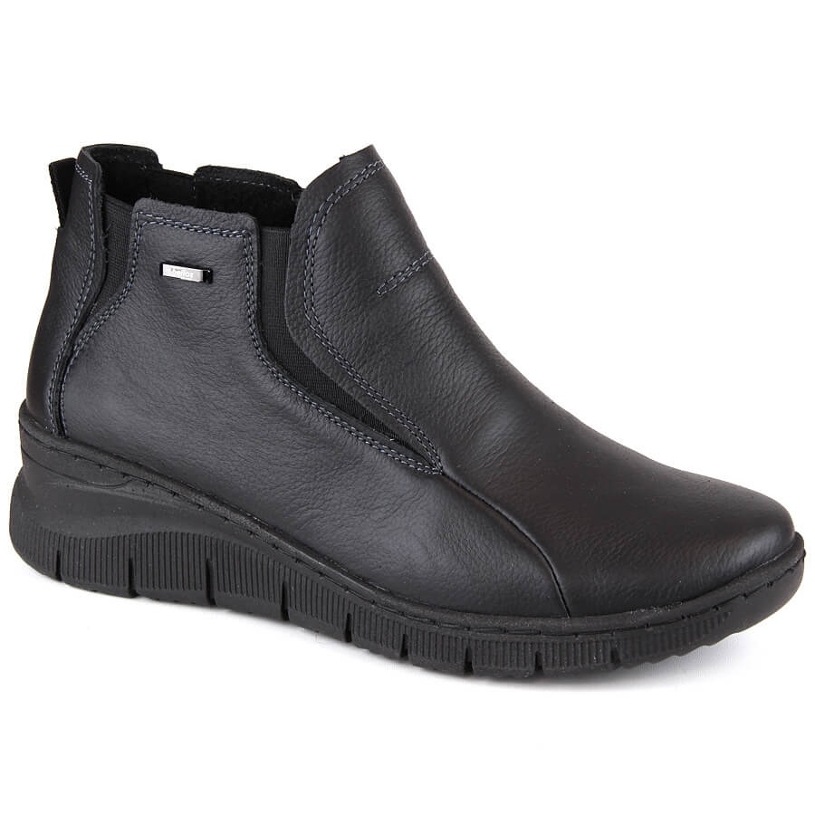 Udobne, izolirane ženske kožne čizme na wedges, crne Helios 552 crna