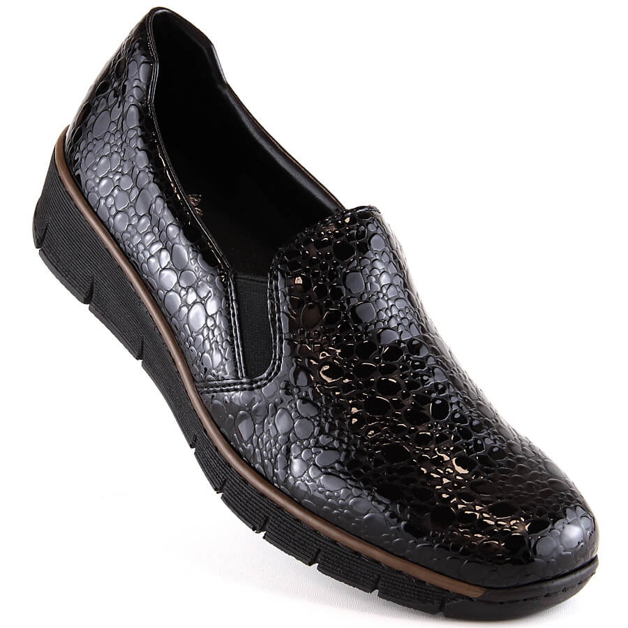 Udobne lakirane ženske step-crne cipele Rieker 53766-45 crna
