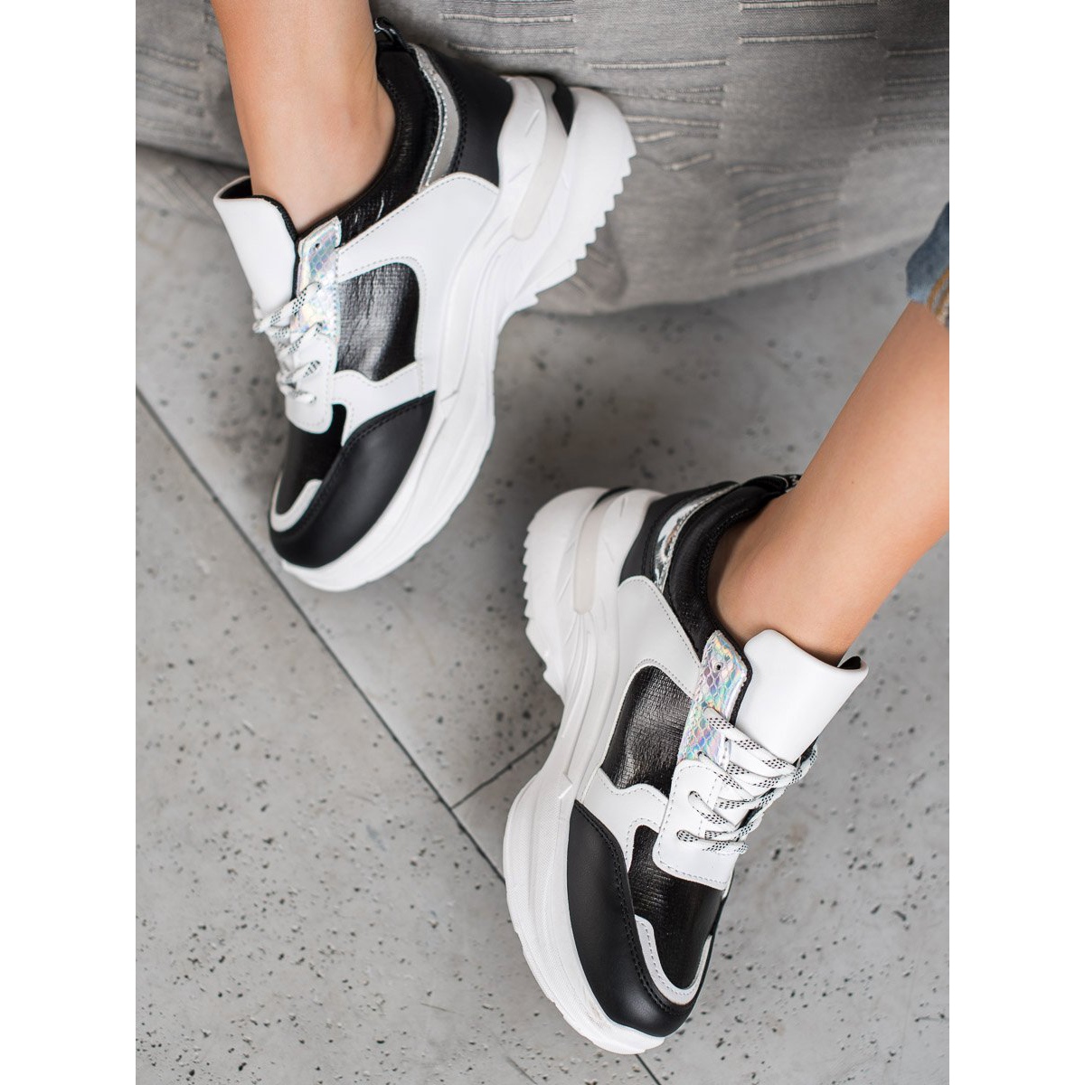 Pojedinosti: SHELOVET Udobne tenisice na platformi bijela crna