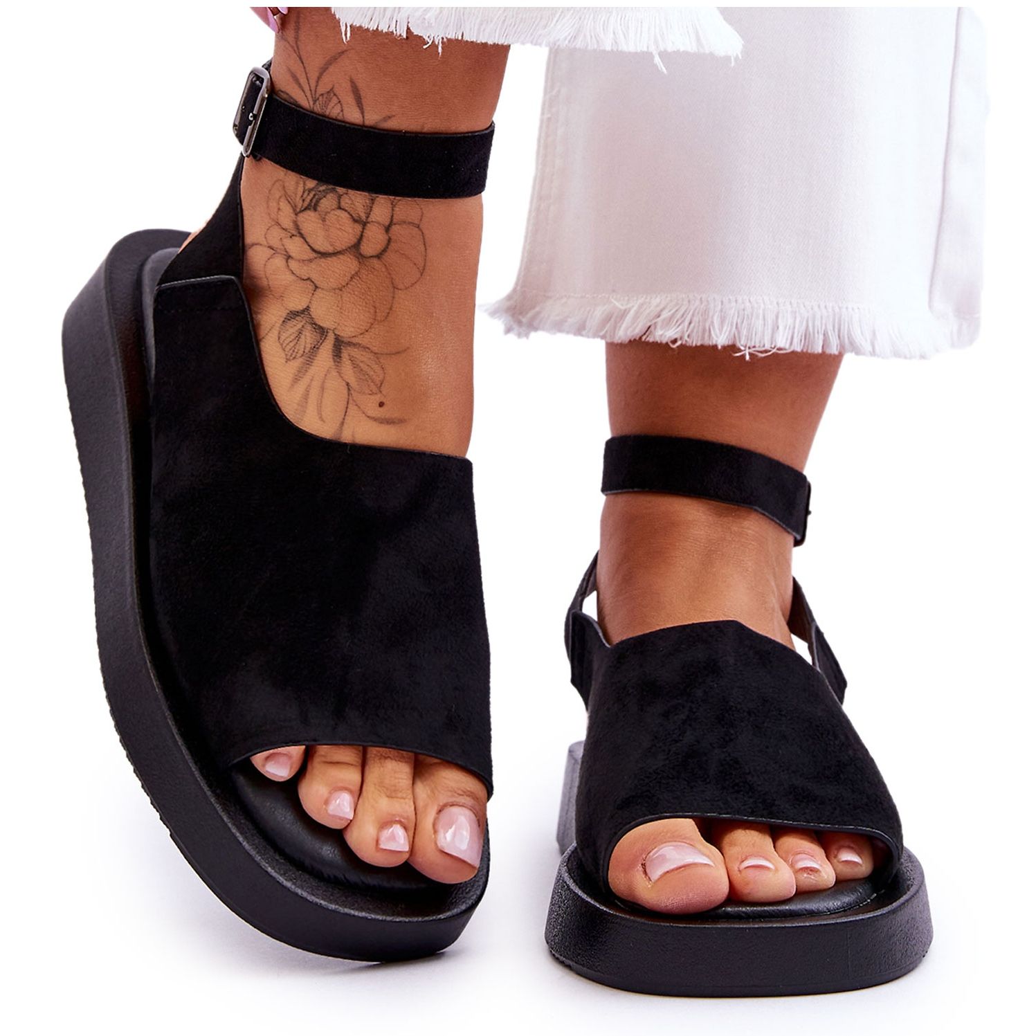 Pojedinosti: Udobne ženske sandale na crnoj rubie platformi crna