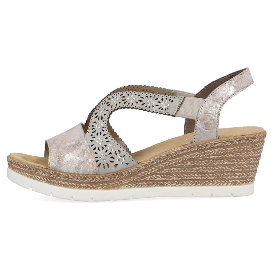 Detalji: Udobne ženske sandale na klin multi Rieker 61916-91 bež