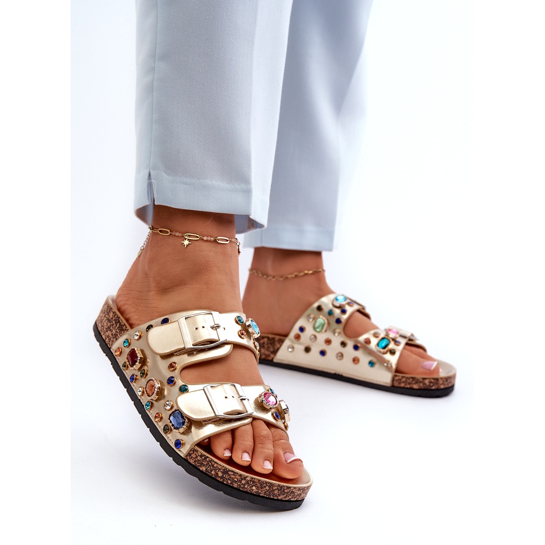 Ukrašene ženske japanke s kopčama S.Barski MY121 zlatne zlatni
