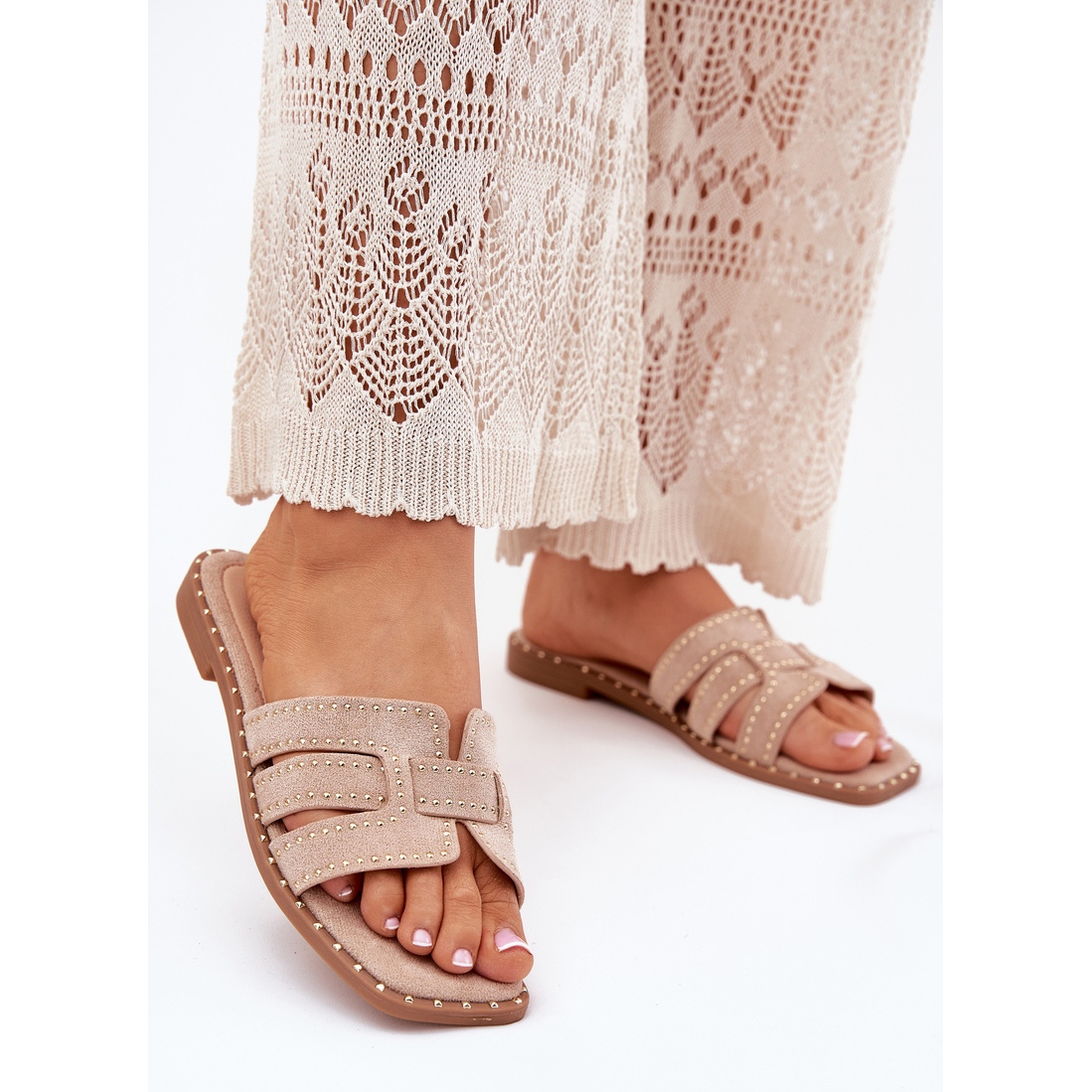 Detalji: Ukrašeni ravni -naneseni flip flops kaki bež