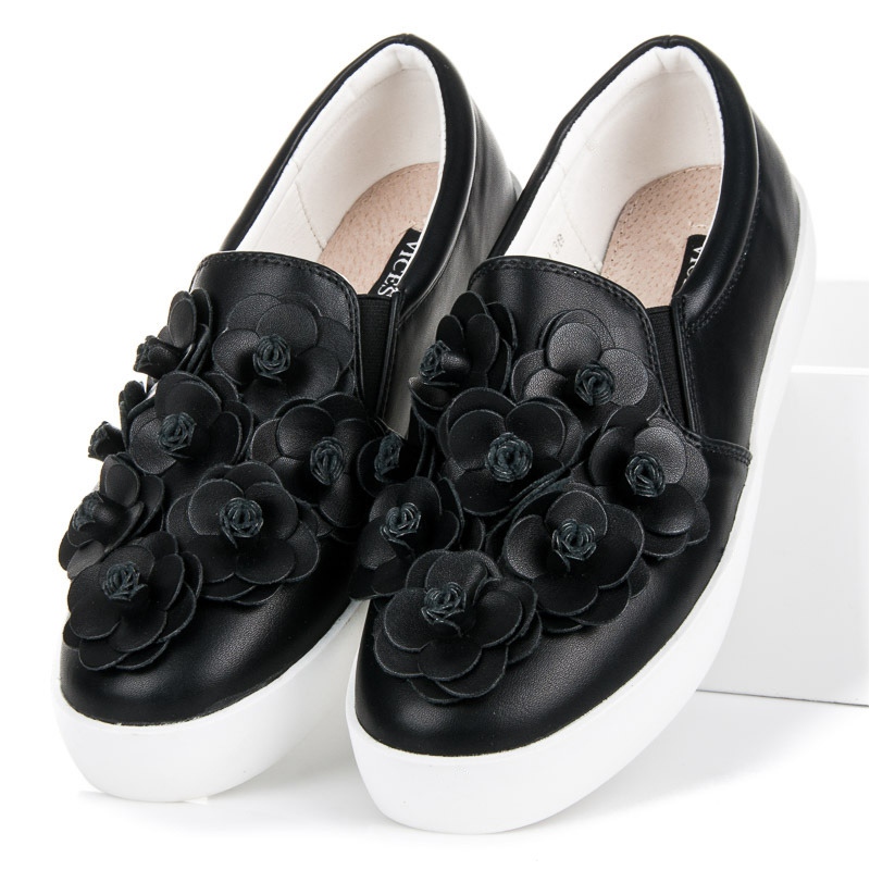 Otkrijte jedinstvenu eleganciju i udobnost uz crne Vices natikače koje će zasigurno postati neizostavan element vašeg ormara. Ove upečatljive cipele savršeno se slažu s raznim stilovima, kako svakodnevnim tako i elegantnijim. Njihovi delikatni ukrasi u obliku originalnih, malih cvjetića daju im suptilan šarm, izdvajajući ih od ostalih modela.