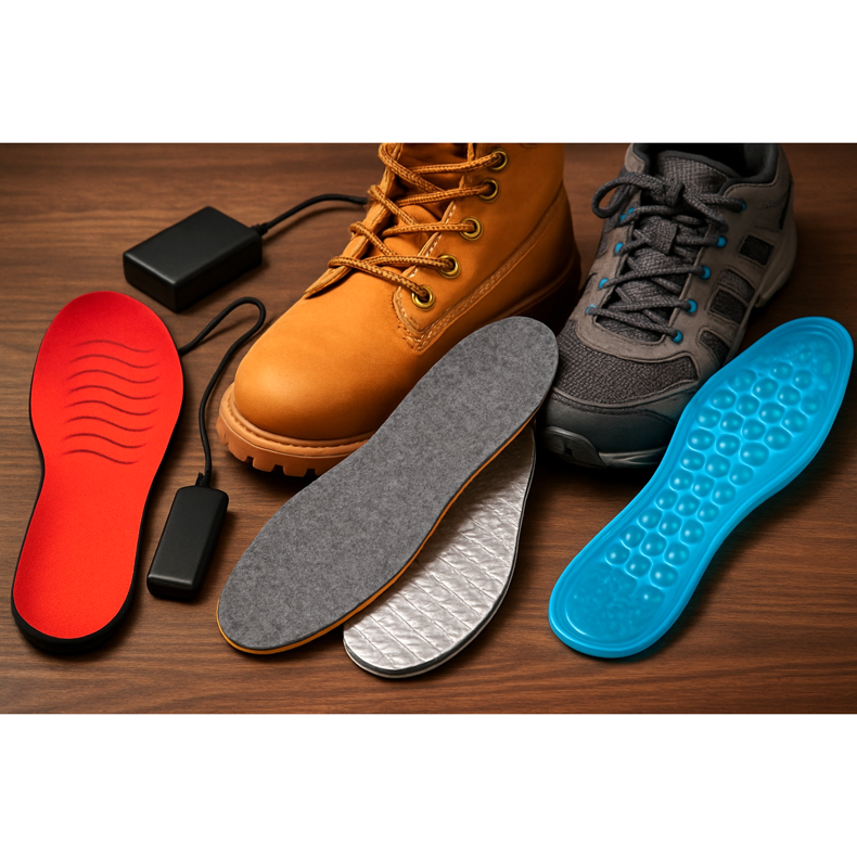 Grijani ulošci, napajani baterijom ili punjeni putem USB-a, griju vaša stopala tijekom mraza. Nude različite stupnjeve grijanja (obično 3-5 stupnjeva), vrijeme rada od 4 do 10 sati. Savršeno za aktivnosti na otvorenom, rad na hladnom i zimske sportove. Toplinski izolacijski umeci od materijala kao što su vuna, Thinsulate, aluminij reflektiraju toplinu tijela i pasivno zadržavaju toplinu. Lakši, jeftiniji, ne zahtijeva punjenje. Izvrstan za zimske trekking cipele i radne čizme. Rashlađujući ulošci s rashladnim gelom pružaju olakšanje u vrućim danima, smanjuju znojenje i sprječavaju pregrijavanje stopala. Reaktivirano u hladnjaku. Savršeno za kurire i građevinske radnike ljeti.
