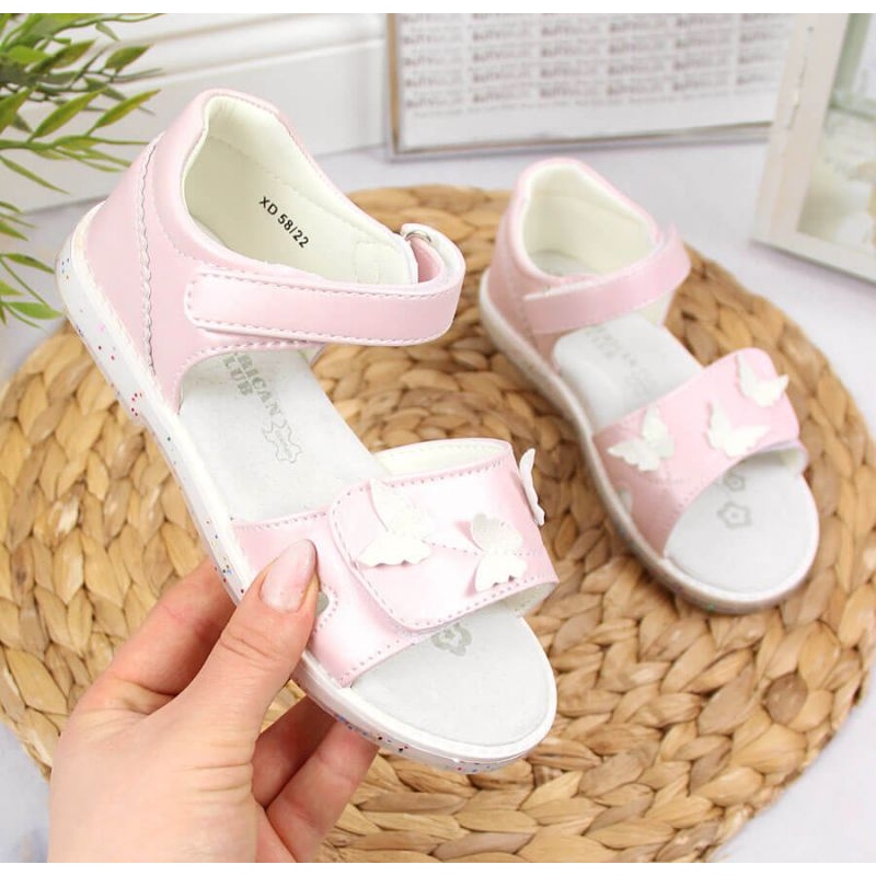 Delikatne, svijetlo ružičaste američke klupske sandale dizajnirane za udobnost i svakodnevnu udobnost djevojaka. Nisko izrezani i praktično pričvršćivanje čičak olakšavaju stavljanje, a univerzalne boje čine da cipele odgovaraju mnogim ljetnim stilizacijama.