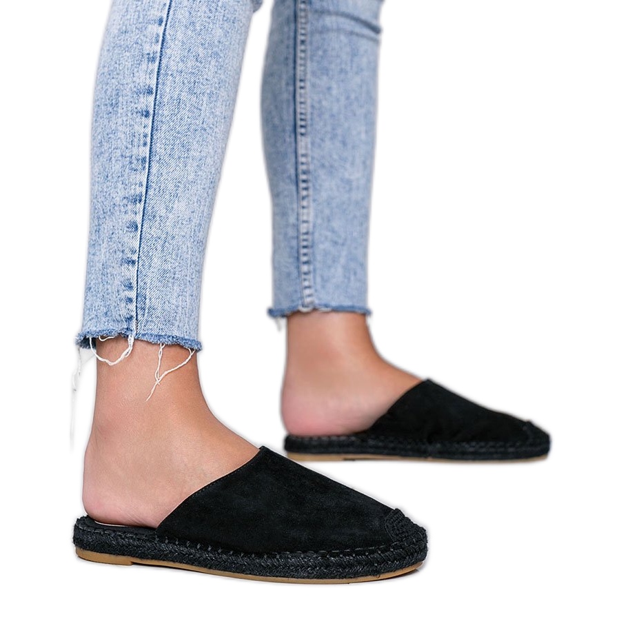 Otkrijte ljetne trendove uz Venus zatvorene japanke u crnoj boji! Ove moderne japanke, inspirirane elegantnim espadrilama, savršen su izbor za tople dane. Gornjište je pažljivo izrađeno od visokokvalitetne ekološke antilop kože koja jamči ne samo moderan izgled, već i udobnost nošenja.