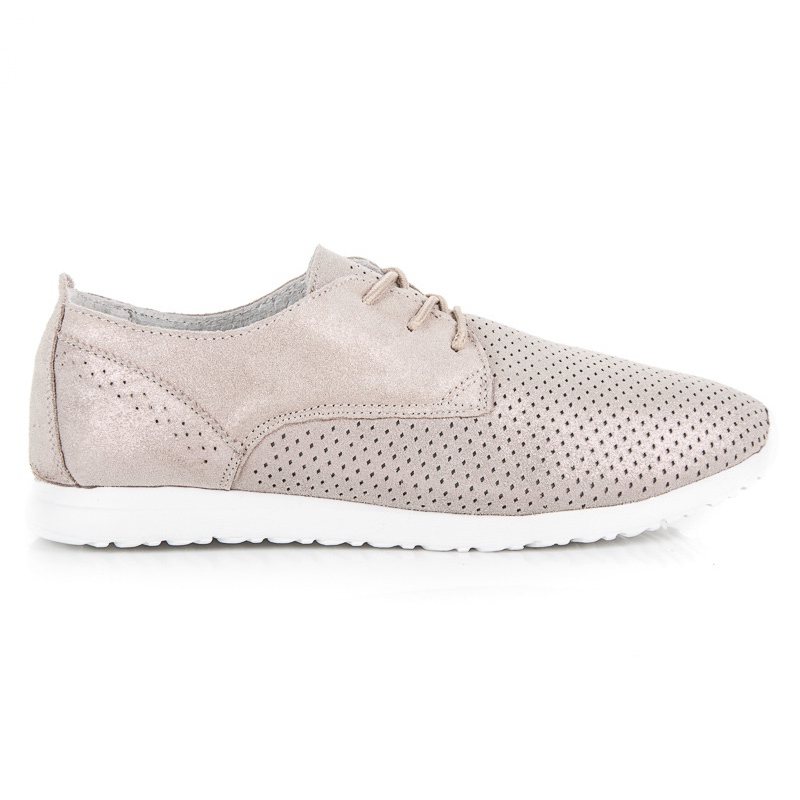Cipele karakterizira klasičan, okrugli vrh i moderan ažur koji im daje lakoću i eleganciju. Zakopčavanje na vezicu omogućuje savršeno pristajanje uz stopalo, a mekana, ugrađena potpetica jamči dodatnu potporu i udobnost. Niska potpetica (3 cm) čini cipele stabilnima, što ih čini idealnim izborom za svakodnevnu upotrebu i za razne vrste događanja.