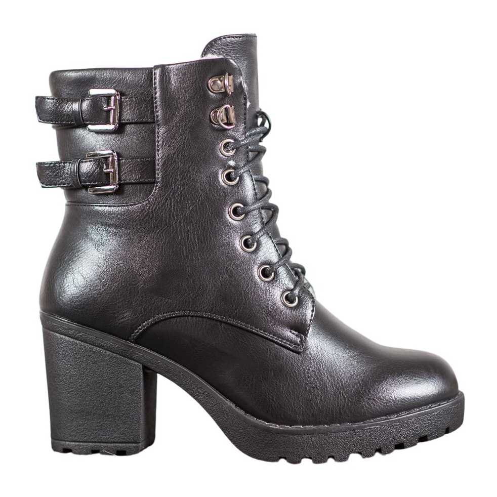 Čipkasto zatvaranje i patentni zatvarač omogućuju jednostavno obuvanje i izuvanje, a ukrasna kopča cipelama daje jedinstven karakter. Zauzvrat, sintetički potplat s gaznim slojem pruža izvrsno prianjanje i izdržljivost.