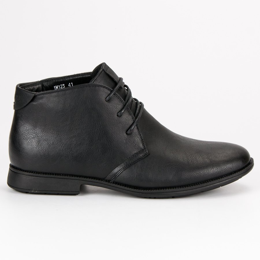 Klasične, crne muške čizme bez suvišnih ukrasa, koje spajaju eleganciju i udobnost korištenja. Izrađene od ekološke kože, savršene su kako za važne prigode tako i za svakodnevnu upotrebu - za uredski ili urbani styling u jesenskoj i zimskoj sezoni.