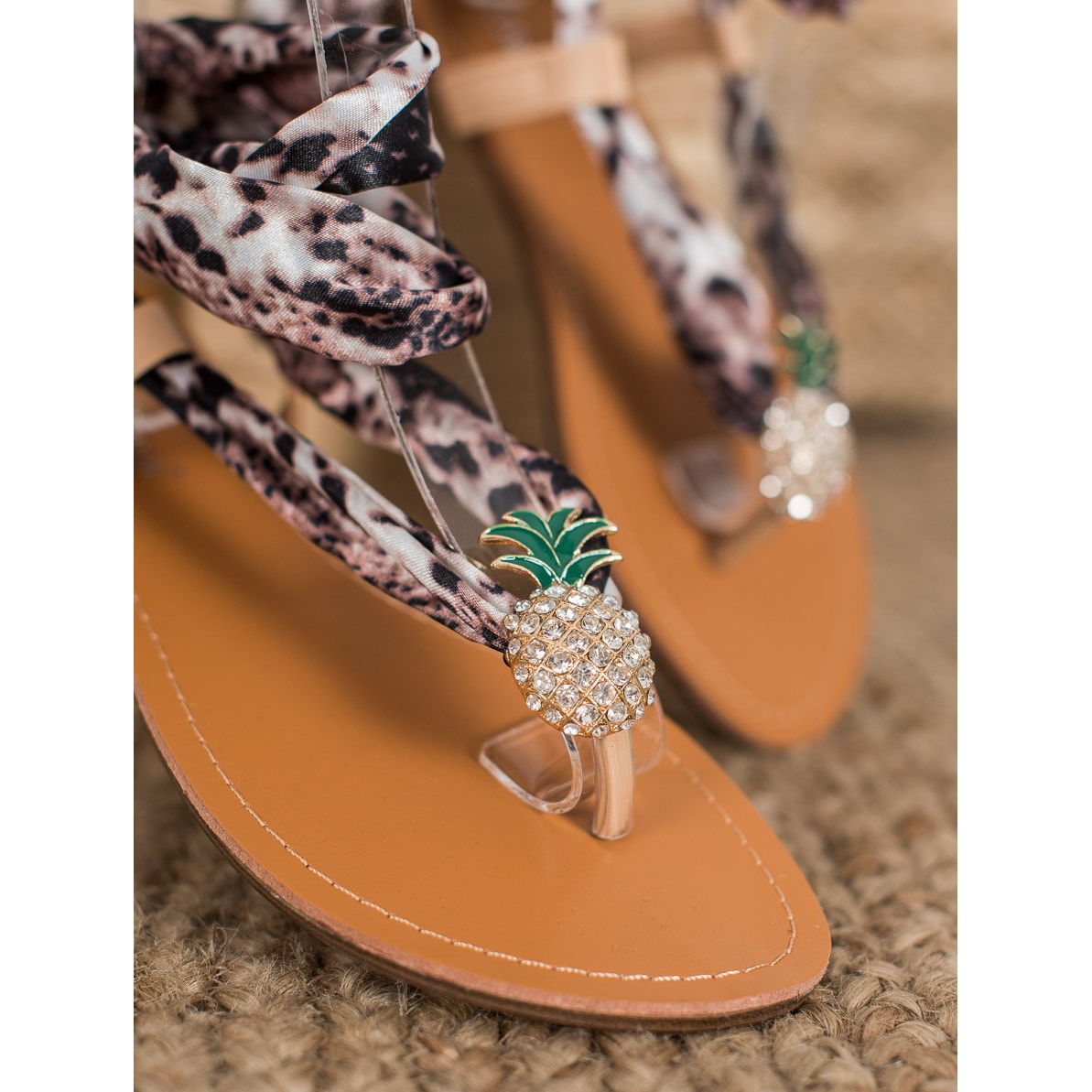 Pojedinosti: SHELOVET Vezane sandale s ananasom smeđa višebojan
