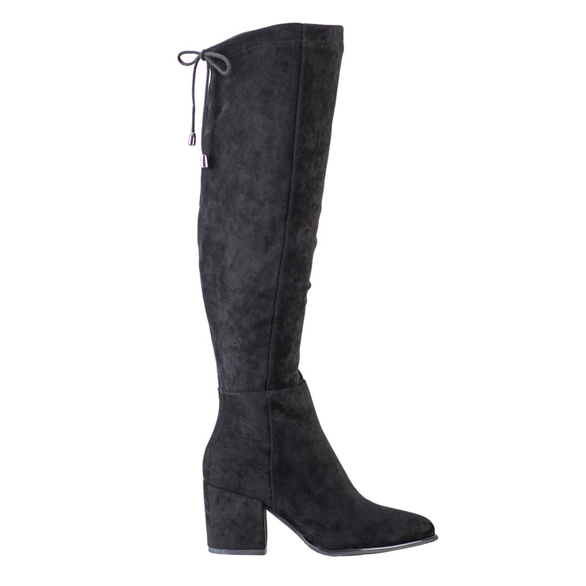 Ugrađena, mekana potpetica i izolacija osiguravaju udobnost nošenja iu hladnijim danima. Okrugli vrh i visina gornjeg dijela iznad koljena dodaju eleganciju i šik, a prepoznatljiva blok peta od 7,5 cm čini da se osjećate samouvjereno na svakom koraku.