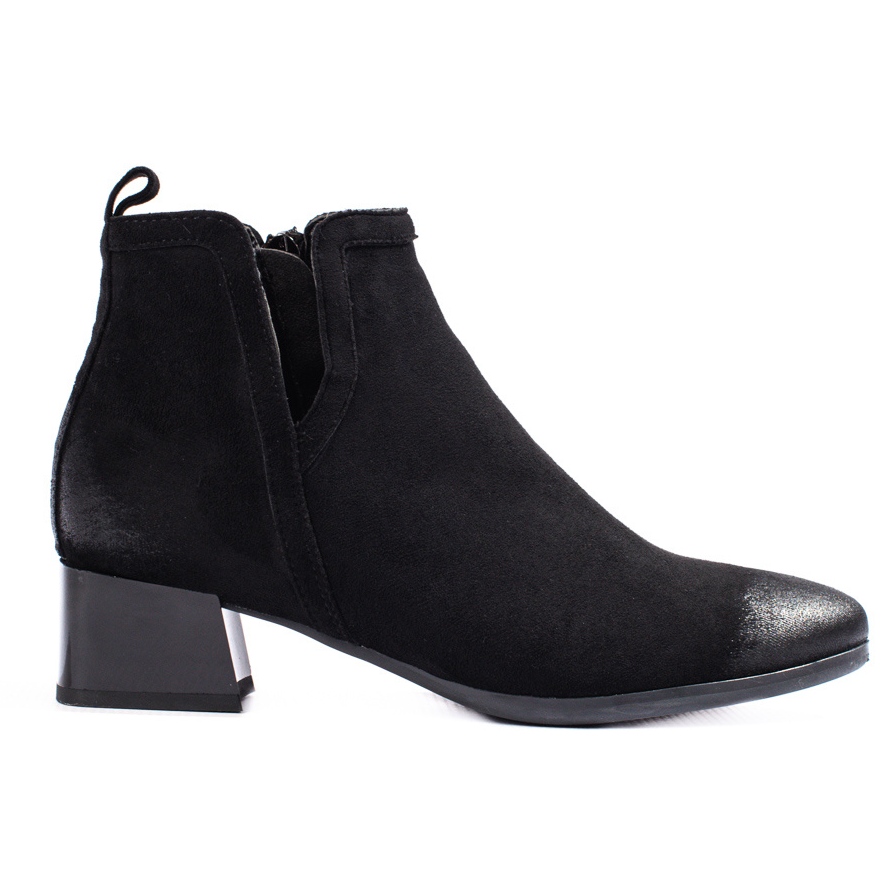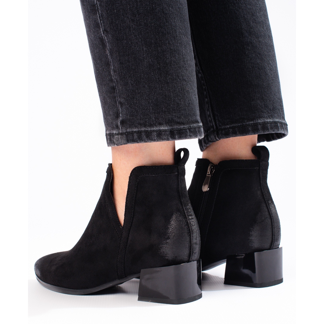 Imaju ugrađenu, ukrućenu petu koja pruža izvrsnu potporu stopalu. Glatki plastični potplat jamči prianjanje i udobnost nošenja, a visina pete od 4 cm čini ih udobnima i elegantnima. Okrugli vrh dodaje klasičan karakter čizmama, dok patentni zatvarač olakšava njihovo obuvanje i izuvanje.