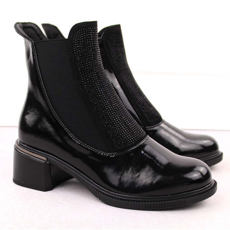 Vinceza crne lakirane ženske gležnjače s kubnim cirkonima crna
