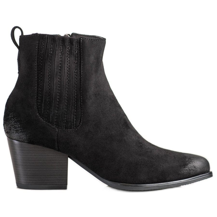 Evo savršenog spoja stila i udobnosti - crne ležerne gležnjače VINCEZA, koje će svakako upotpuniti svaki jesensko-zimski styling. Izrađene od visokokvalitetne imitacije antilop kože, izgledaju elegantno i bezvremenski. Njihov minimalistički dizajn bez uzoraka čini ih prikladnim kako za svakodnevnu tako i za svečaniju kombinaciju.