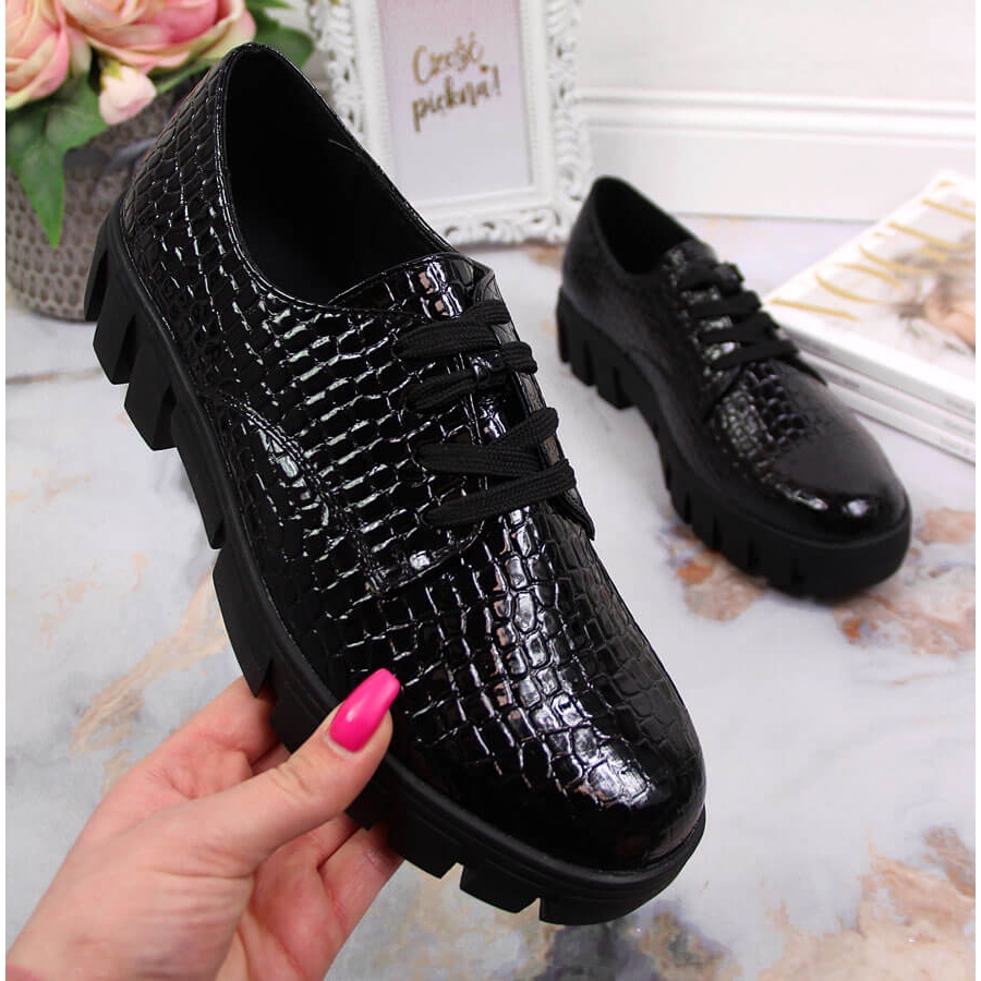 Moderne i učinkovite Vinceza cipele kombinacija su moderne sjajne ekološke kože u Kroku. Uzorak s udobnošću nošenja. Model s ogromnom, blokadnom petom i suptilnom platformom osigurava stabilnost i optičko proširenje siluete, koji svakodnevno dobro rade u urbanim stilu.