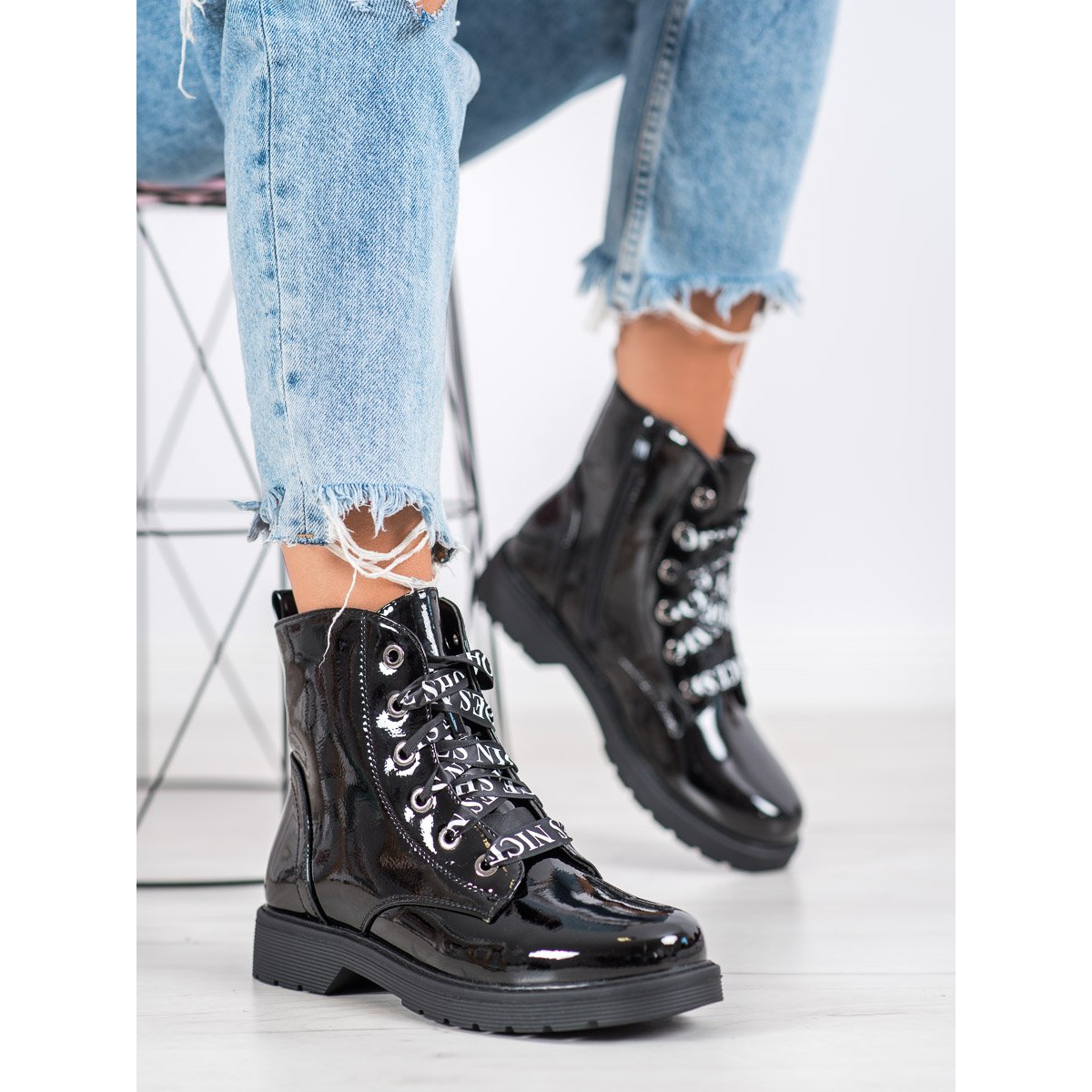 Otkrijte stil i udobnost bez premca uz VINCEZA lakirane radnje u klasičnoj crnoj boji. Ove moderne bovver čizme kreirane sa ženama na umu savršen su izbor za svaki dan, posebno u sezoni jesen/zima. Zahvaljujući elegantnoj lakiranoj završnoj obradi, isticat ćete se u masi, kombinirajući casual i rock stil.