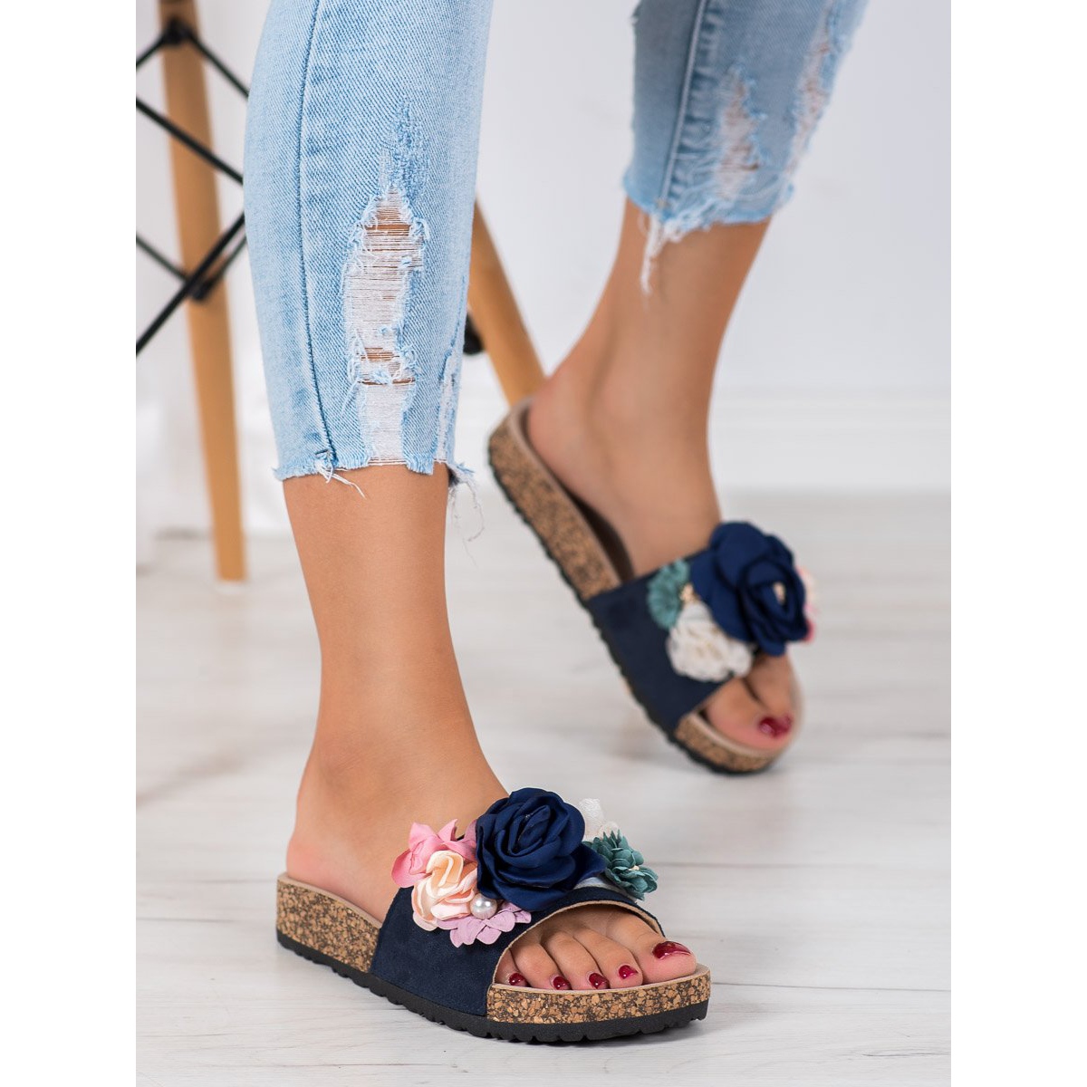 Pojedinosti: VINCEZA papuče s cvijećem tamnoplava plava višebojan