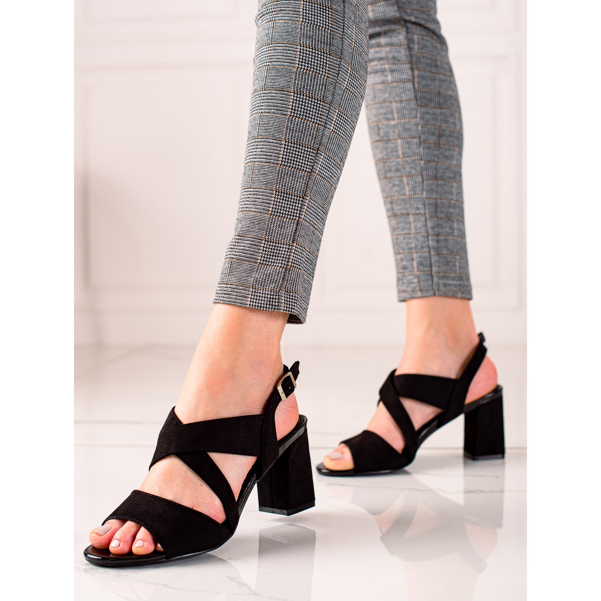 Sandale karakterizira otvorena peta i bez prstiju, što osigurava maksimalnu udobnost i prozračnost. Potpetica visoka 8 cm u obliku bloka dodaje chic dok stabilizira vaš korak. Izrađene od visokokvalitetne imitacije antilop kože i ekološke kože, ove sandale nisu samo elegantne, već i ekološke.