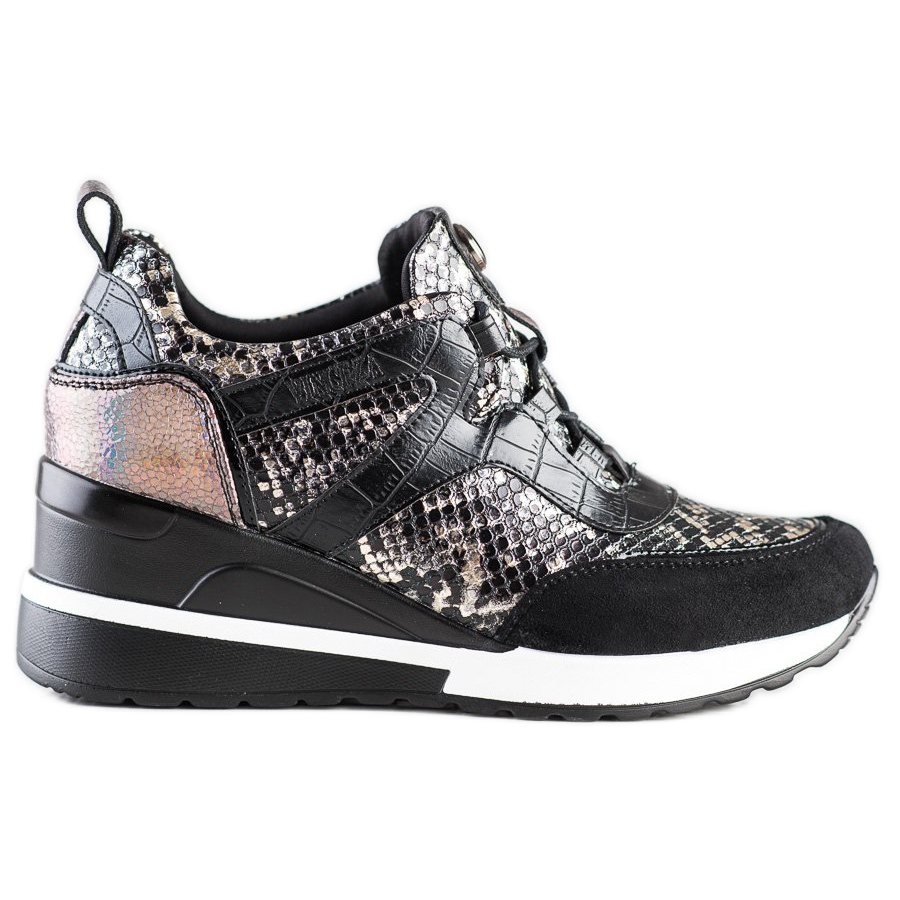 VINCEZA wedge tenisice u crnoj boji savršen su izbor za žene koje žele spojiti udobnost s modernim izgledom. Ove sportske cipele savršene su za svakodnevnu upotrebu, a njihov se stil lako kombinira s raznim odjevnim kombinacijama, kako ležernim tako i elegantnijim.