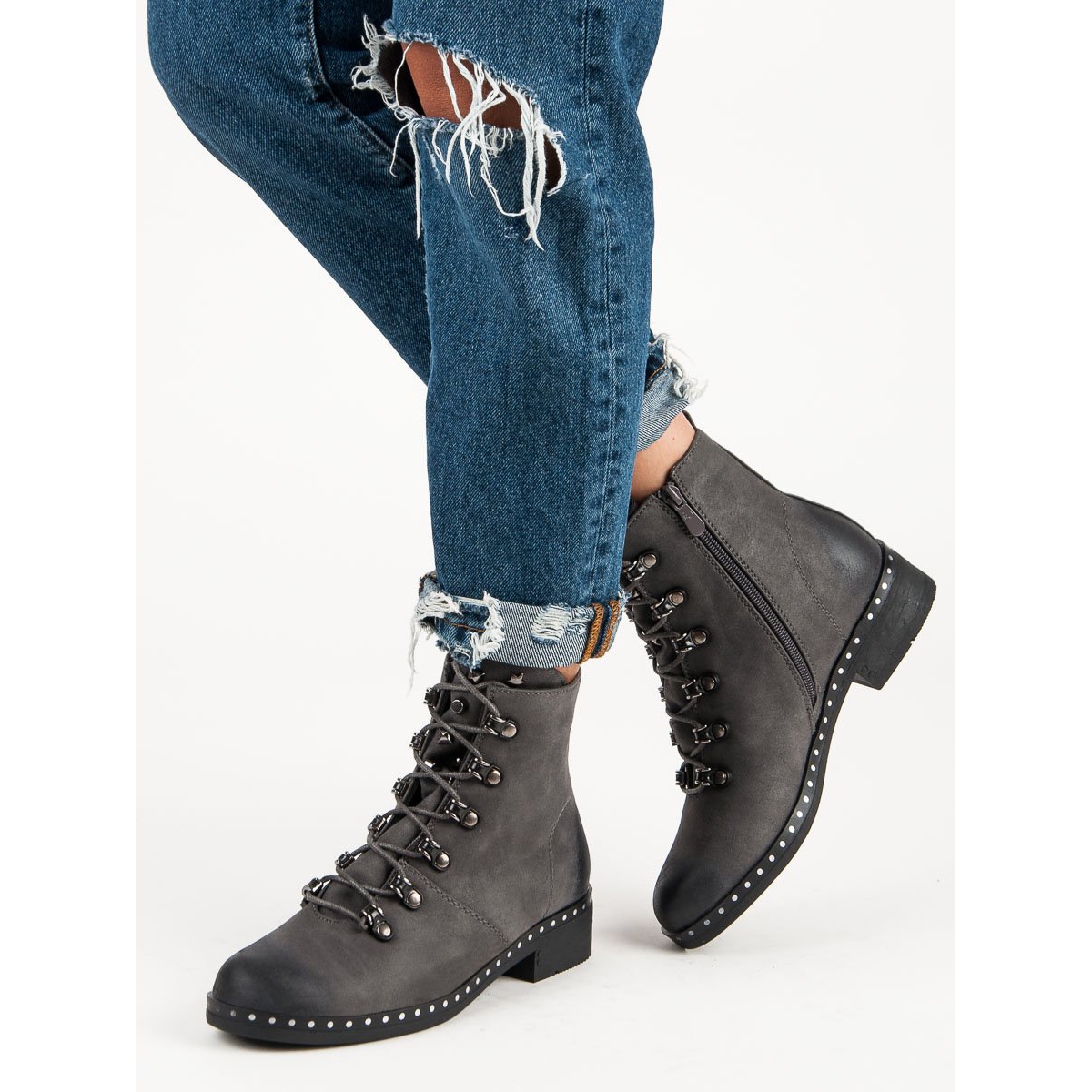 Izrađene od visokokvalitetnih materijala, radnice se odlikuju klasičnim krojem i suptilnom sivom bojom što omogućuje jednostavno kombiniranje uz razne stilove. Zahvaljujući dobro promišljenom dizajnu s patentnim zatvaračima i vezicama, širinu gornjeg dijela možete prilagoditi svojim potrebama, što osigurava savršeno pristajanje uz nogu.