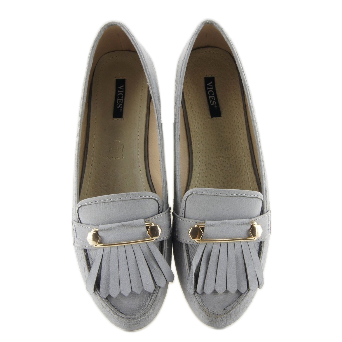 Mokasine 3052 Grey u vintage stilu idealan su izbor za žene koje cijene kombinaciju klasičnog stila s modernim naglascima. Izrađene od mekane eko-kože, ove sive cipele karakteriziraju suptilni nabori, što im daje originalan vintage izgled. Detalji poput resica na nosu i elegantnog zlatnog ukrasa dodaju eleganciju i uklapaju ih u mnoge stilove.