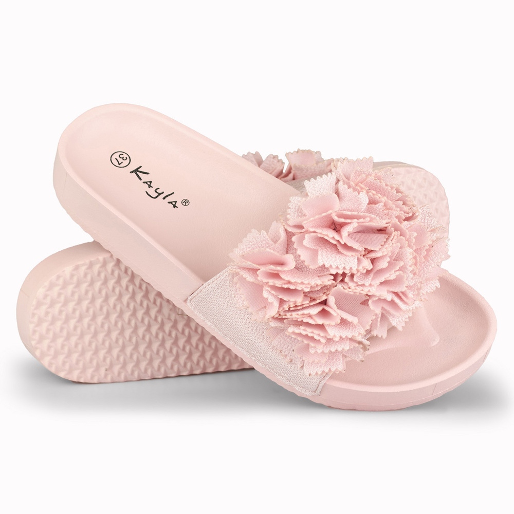 Detalji: Violett ženske ružičaste cvjetne papuče ružičasta