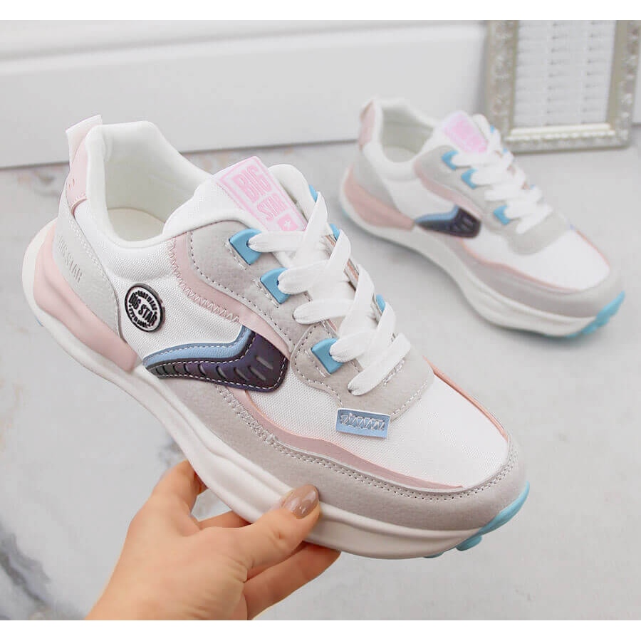 Ženske sportske cipele Multicolor Big Star KK274097 savršen su izbor za aktivne žene koje cijene udobnost i moderan izgled. Izuzetno elegantne i šarene, ove tenisice odlikuju kombinacija bijele, ružičaste, plave, mornarsko plave i bež boje, zbog čega se uklapaju u mnoge proljetne i jesenske stilove.