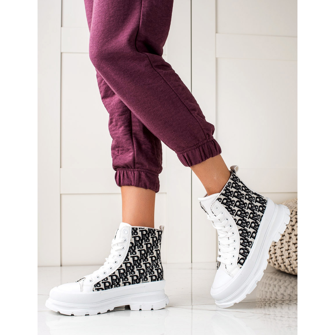 Visoke bijele tenisice TRENDI dostupne su u bijeloj i crnoj boji, što ih čini jednostavnim za uklop u garderobu. Gornja širina od 20 do 22 cm osigurava slobodu kretanja, a okrugli vrh daje im klasičan izgled.