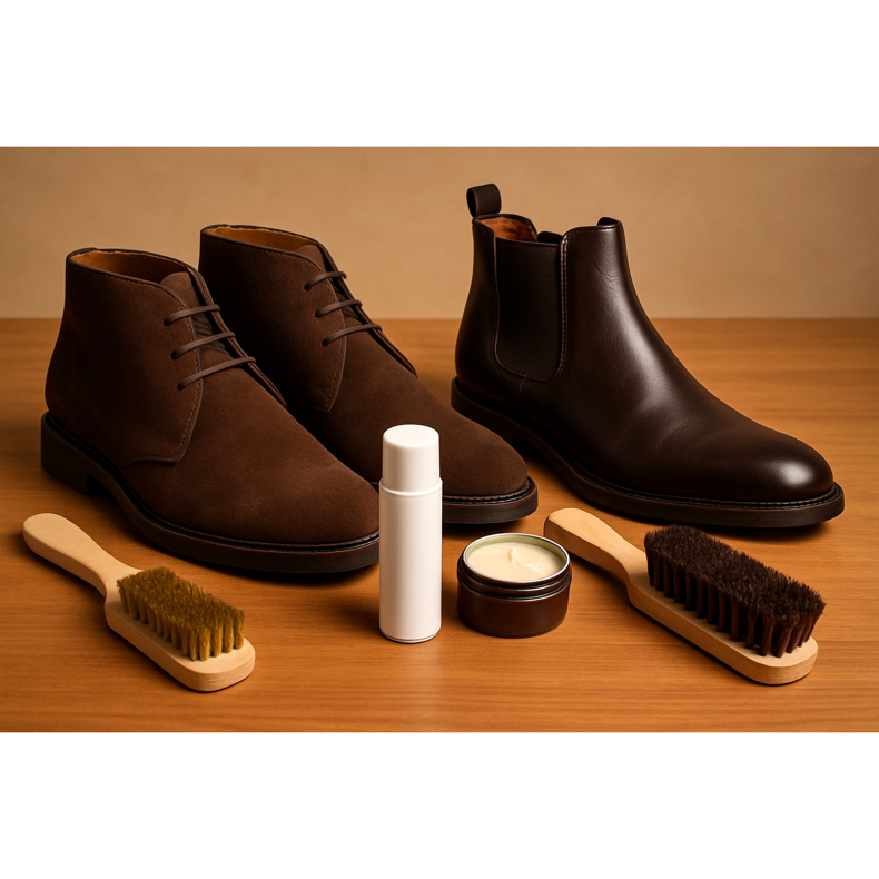 Krema ili pasta u boji cipela, četka od konjske dlake, cedrovine za cipele nakon svakog nošenja.