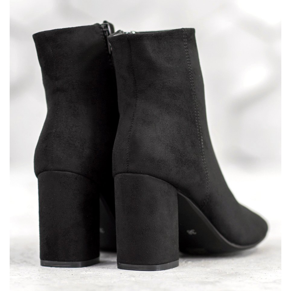 Elegancija i udobnost u jednom - crne gležnjače na visoku petu brenda Super Mode. Ove elegantne cipele savršen su izbor za žene koje žele izgledati moderno i osjećati se ugodno. Klasična crna boja čini da se čizme savršeno uklapaju uz razne stilove - od romantičnih haljina, preko ležernih suknji, do elegantnih hlača.
