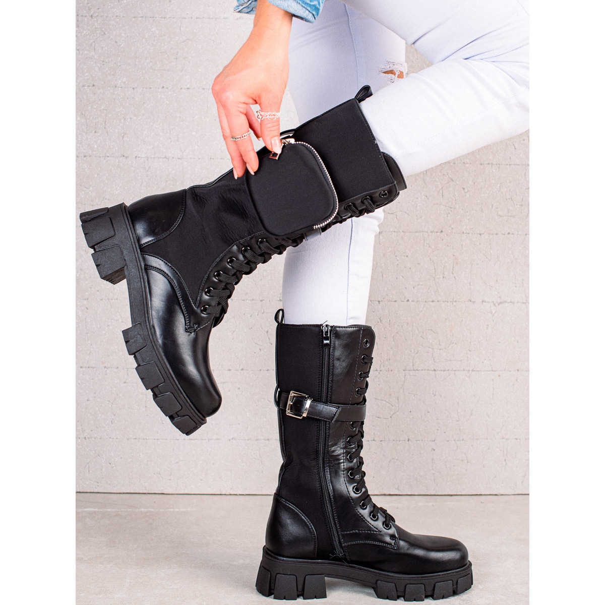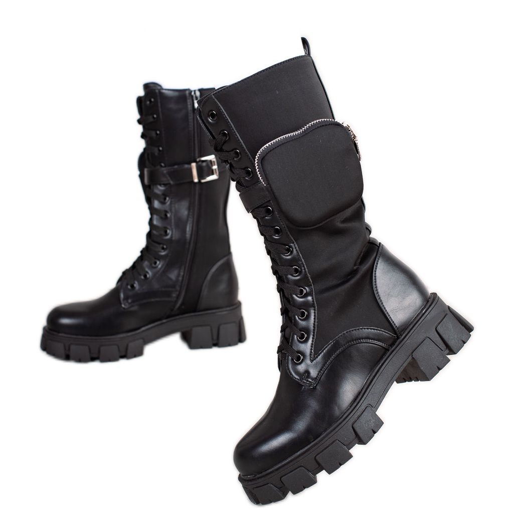 Pojedinosti: TRENDI Visoke crne čizme s džepom crna