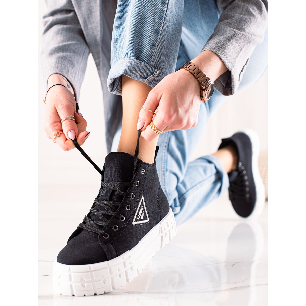 Otkrijte stil i udobnost uz TRENDI Fashion Shoes visoke tenisice u klasičnoj crnoj boji. Ove ženske tenisice savršen su izbor za svaku modernu ženu koja cijeni moderan izgled i udobnost nošenja. Izrađene od visokokvalitetne tkanine, vanjske i unutarnje, pružaju izvrsnu prozračnost i fleksibilnost te jednostavnost održavanja.