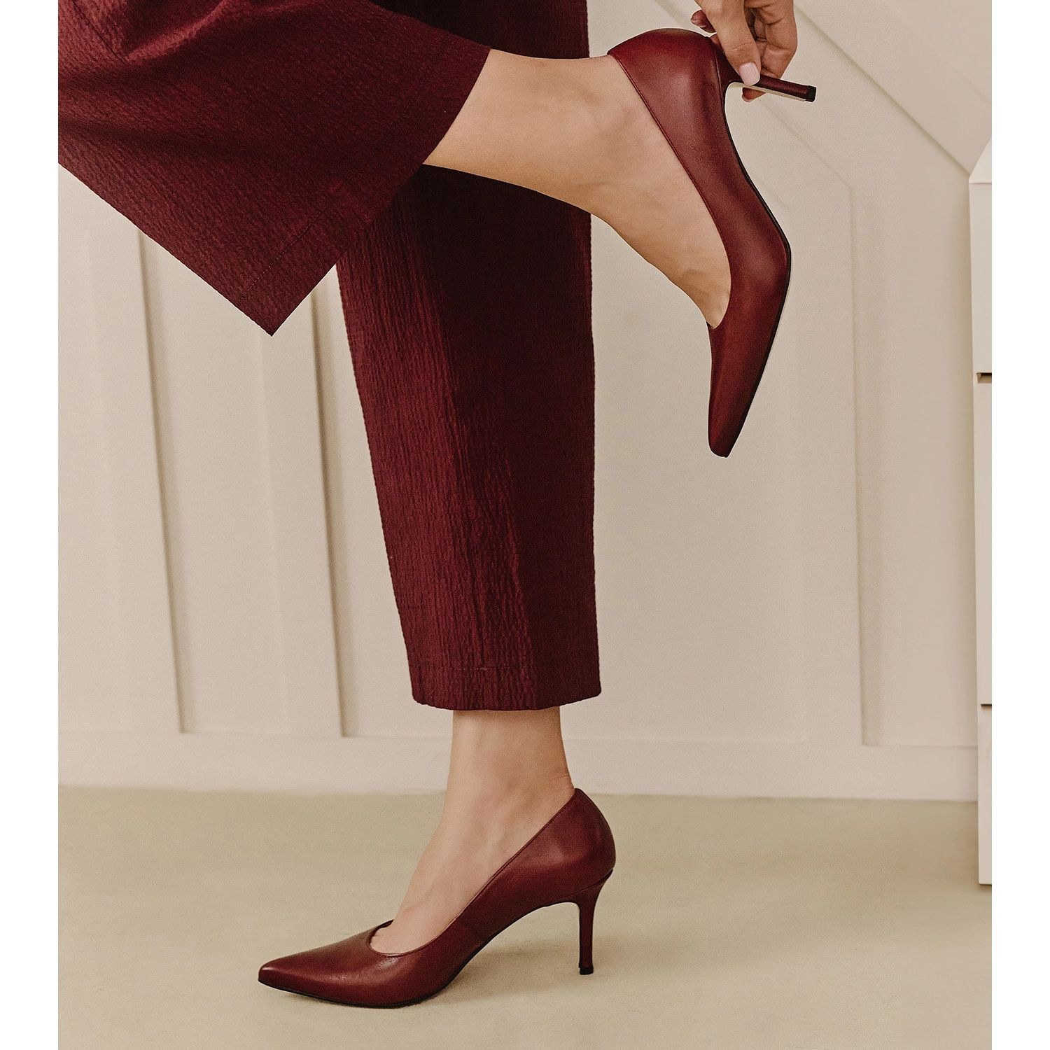 Upečeni nos i elegantni pin visok 7 cm daju ovim cipelama poseban karakter, savršeno se uklapaju u najnovije modne trendove. Unutrašnjost crpki završena prirodnom kožom pruža udobnost prilikom hodanja, a koža obložena kožom dodaje stilski naglasak petama.