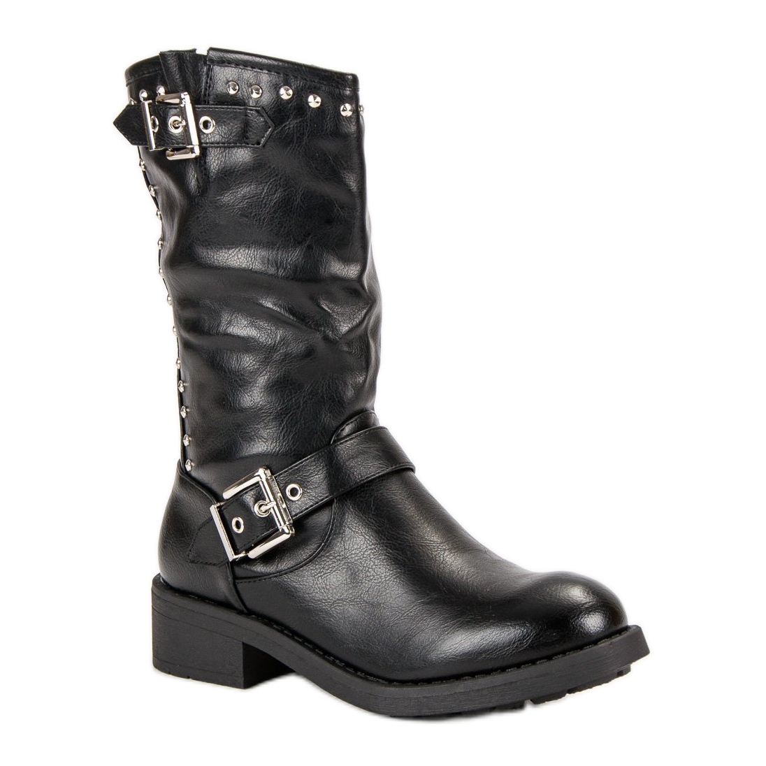 Izrađene od visokokvalitetne ekološke kože, odlikuje ih čvrsta konstrukcija i elegantan, rock stil. Ukrasna kopča i metalni kamenčići dodaju im karakter, čineći ih savršenom nadopunom ležernog i izražajnijeg stila. Zahvaljujući ugrađenoj, ukrućenoj peti, čizme ne samo da dobro drže nogu, već pružaju i stabilnost tijekom hodanja.