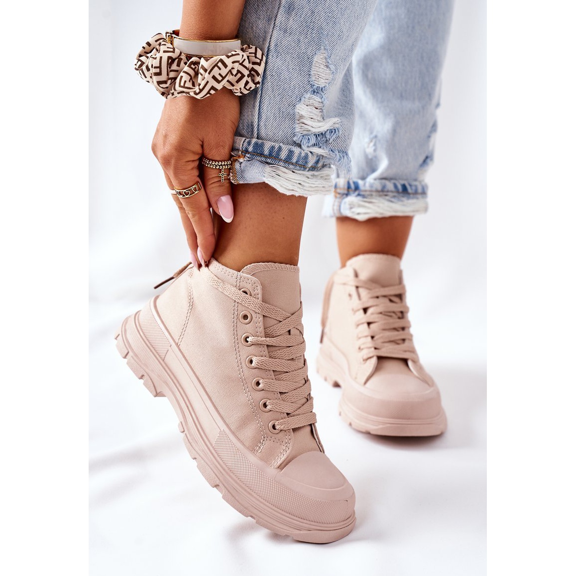 Pojedinosti: FJ1 Visoke tenisice bež Trissy na velikom potplatu
