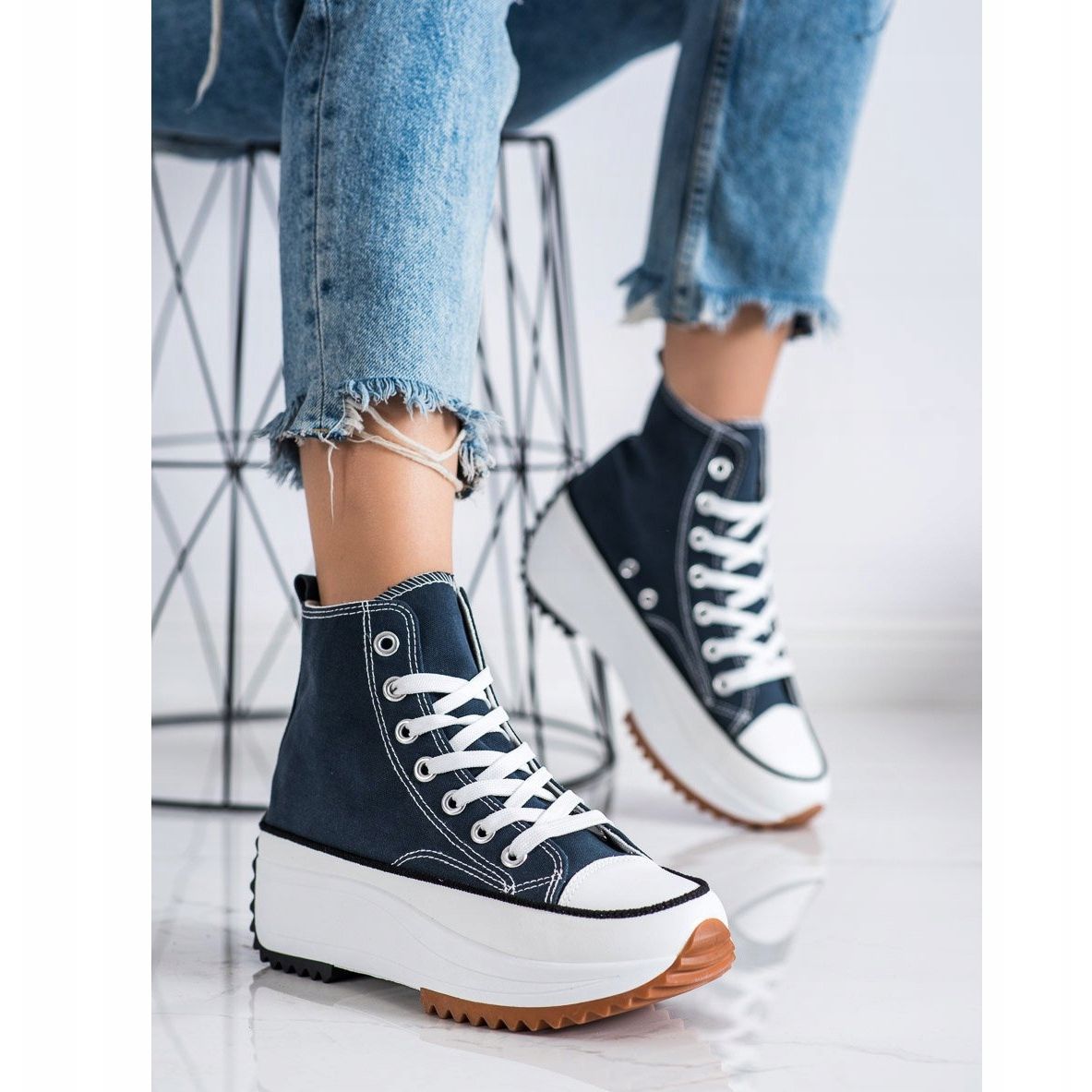 Otkrijte novu dimenziju udobnosti i stila uz SHELOVET tenisice s visokom platformom u klasičnoj mornarsko plavoj boji. Ove jedinstvene cipele, dizajnirane imajući na umu žene, spajaju sportski stil s modnim trendovima, što ih čini savršenim za svakodnevnu upotrebu.