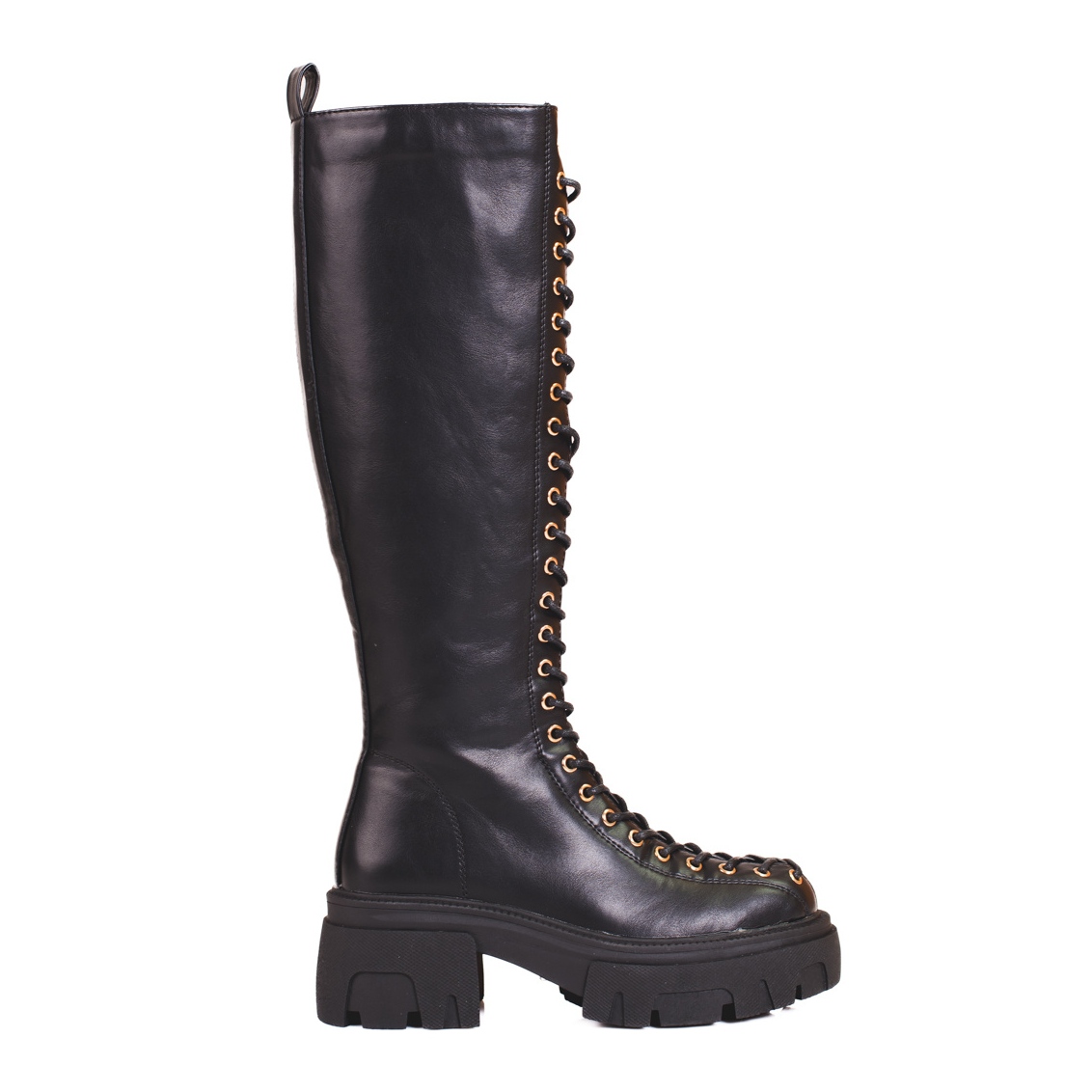 Pojedinosti: Visoke ženske Shelovet čizme na vezanje crna