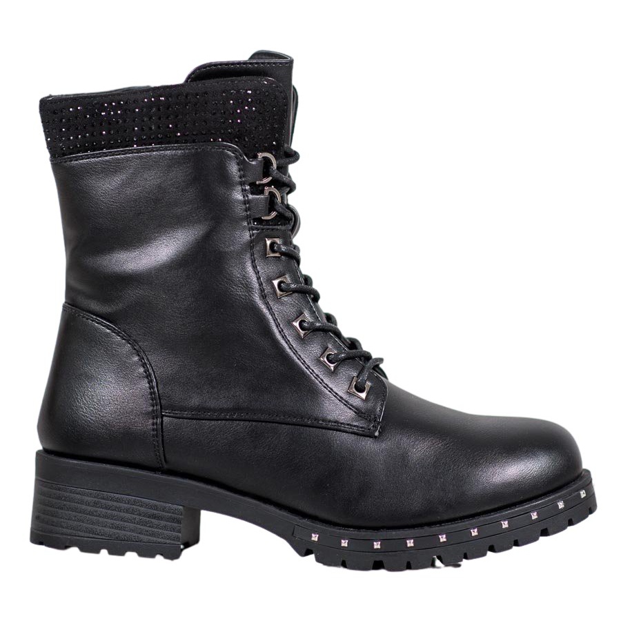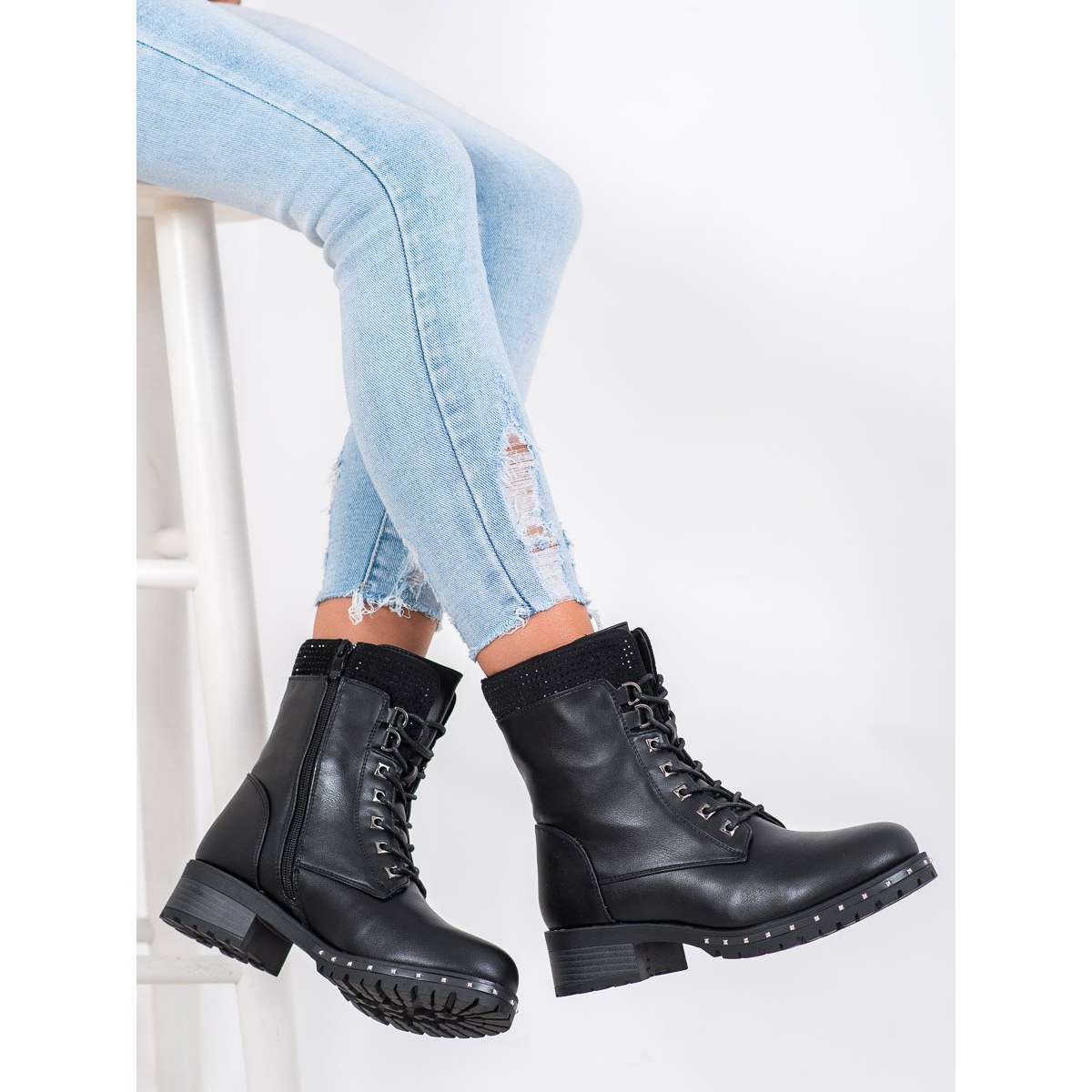 Gornjište visine 16 cm učinkovito štiti od nepovoljnih vremenskih uvjeta, a okrugli vrh dodaje suptilnost. Visok i ravan sintetički potplat debljine 2 cm osigurava stabilnost i udobnost pri svakom koraku. Osim toga, kamenčići i nitne na vrhu su moderan naglasak koji cipelama daje rock karakter.
