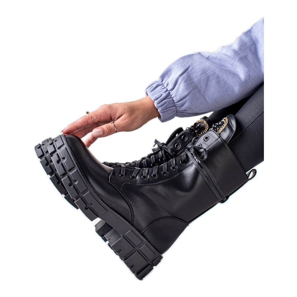 Crni radnici izrađeni su od visokokvalitetne ekološke kože, što ih čini ne samo ekološki prihvatljivima, već i izdržljivima i lakima za održavanje. Topla, tekstilna unutrašnjost osigurava udobnost u hladnijim danima. Dodatna prednost je izolacija koja vas grije, au kombinaciji s patentnim zatvaračem i manžetama na vezanje, ove čizme savršeno pristaju uz nogu.