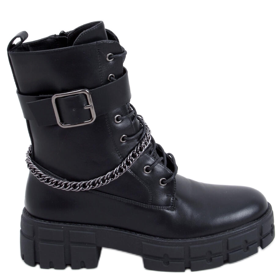 Vojne čizme Maude Black savršen su izbor za žene koje cijene moderan i udoban stil. Ove crne radničke cipele s debelim potplatom odlikuju se ne samo solidnom izradom, već i jedinstvenim dizajnom koji privlači pažnju. Impresivan lanac na gornjem dijelu jedan je od najmodernijih dodataka sezone koji obući daje karakter i originalnost.
