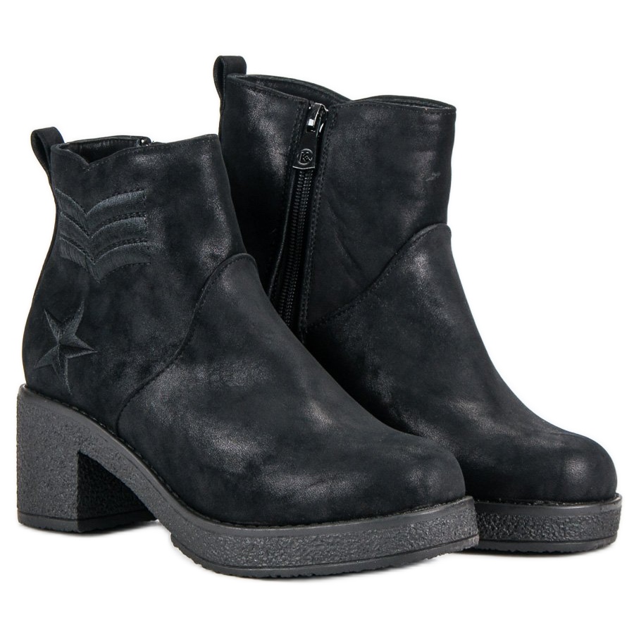 Izrazit naglasak u obliku izvezene vojne zvijezde daje im jedinstven karakter koji privlači poglede. Blok peta od 6 cm, zajedno sa stabilnom platformom, pruža odgovarajuću potporu, što znači da ove čizme možete nositi cijeli dan bez žrtvovanja elegancije.