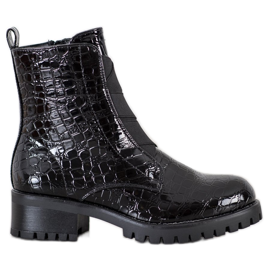 Izrađene od visokokvalitetne ekološke kože, koju karakterizira upečatljiv zmijski uzorak, ove cipele privlače pozornost i dodaju karakter svakom stajlingu. Lakirana završna obrada čini radnu površinu ne samo modernom, već i praktičnom - lako se čisti i otporna je na vremenske uvjete.