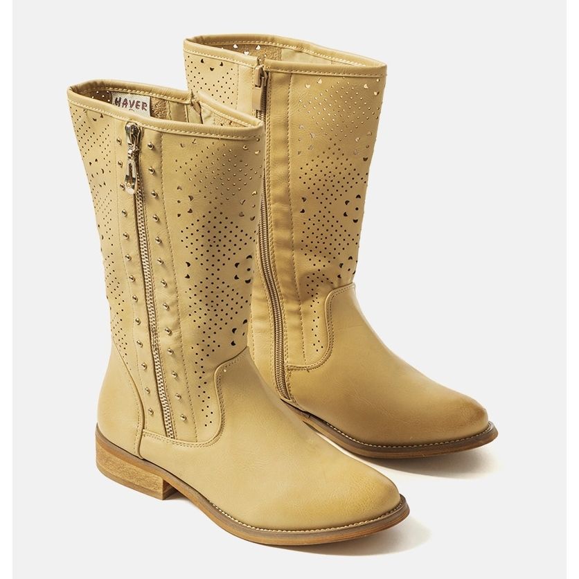 Delikatne, otvorene čizme u bež nijansi odličan su izbor za djevojku koja voli utjehu u kombinaciji s modernim izgledom. Gornja izrađena od ekološke kože s ukrasnim uzorkom otvorenog rada izgleda vrlo elegantno i istovremeno pruža bolju ventilaciju - zato cipele nisu izolirane i najbolje će raditi u proljetnoj sezoni.
