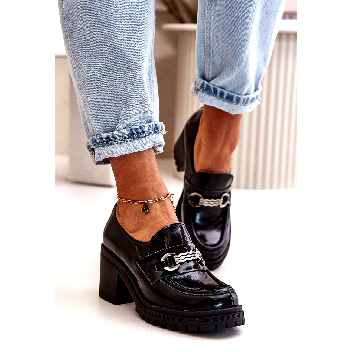 Predstavljamo lakirane ženske cipele na stupu Zazoo, što je savršena kombinacija elegancije i udobnosti. Izrađene od visokokvalitetne prirodne kože, ovi crni natikači dodaju klase svakoj stilizaciji, kako svakodnevno, tako i u formalnijim prilikama.