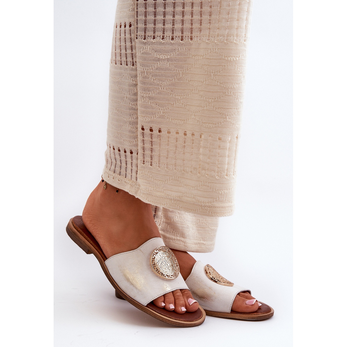 Pojedinosti: Zazoo 2938 Kožne japanke na ravnu petu sa zlatnim ukrasom, brušene