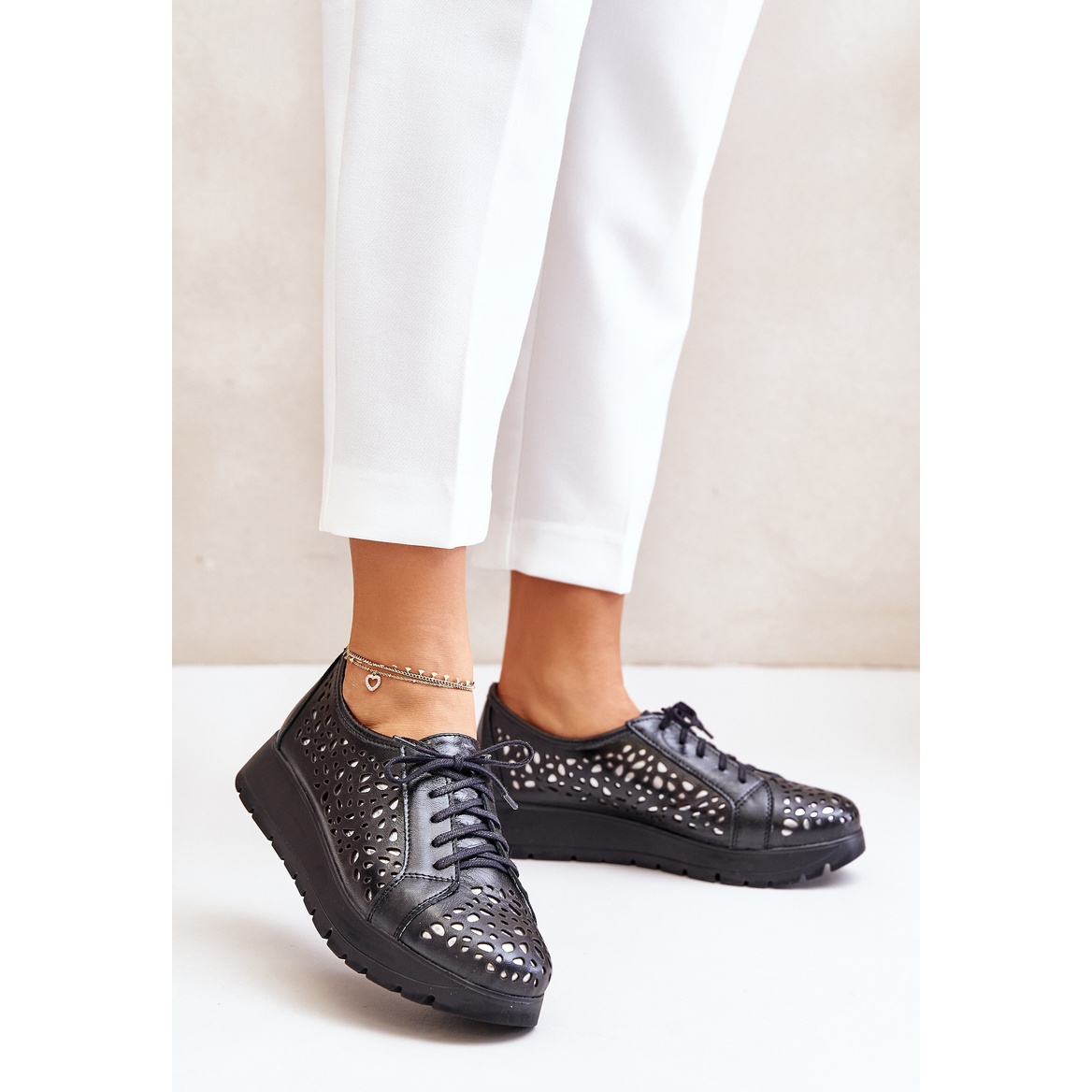Zazoo 2973 Kožne cipele s platformom s otvorenim uzorkom, crne crna