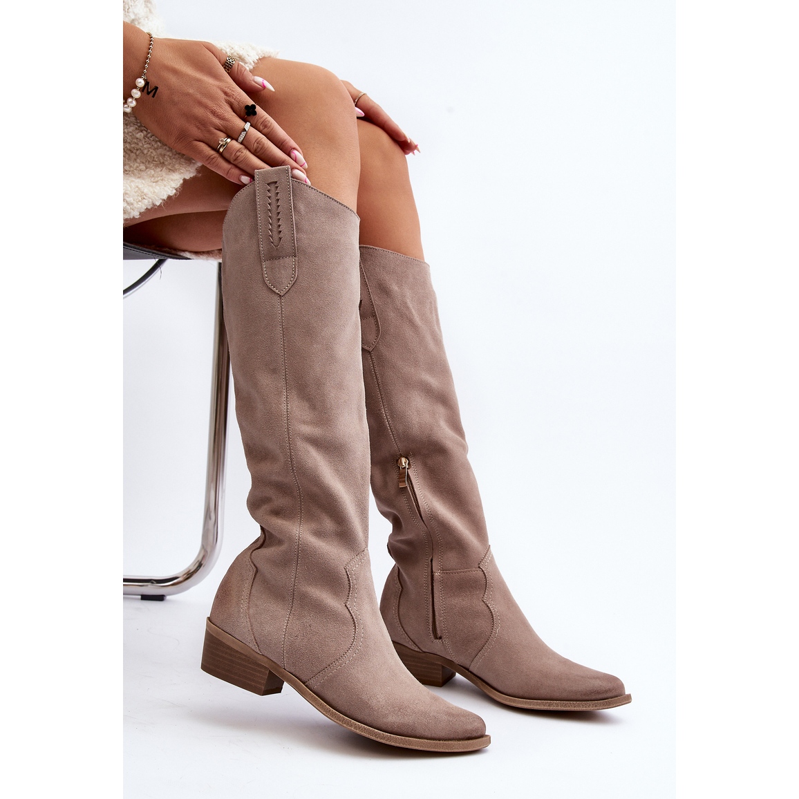 Pojedinosti: Zazoo 3427 Ženske kaubojske čizme od brušene kože Cappuccino bež