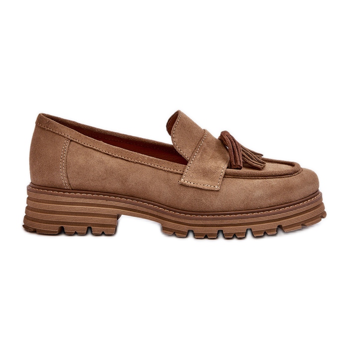 Detalji: Zazoo 3469 Ženske mokasine od brušene kože s resama, bež